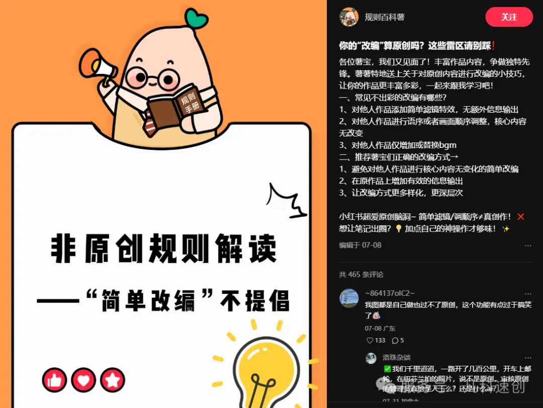 这次小红书新规调整,“内容原创” 是重点管控方向,以下 3 点,所有小红书创作者都必须注意: