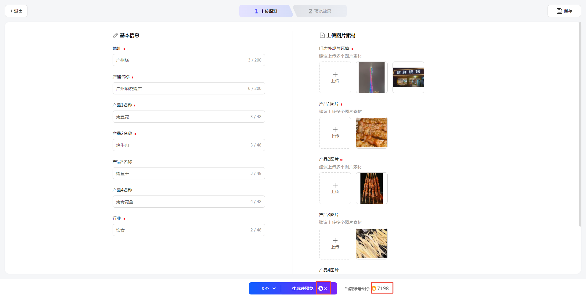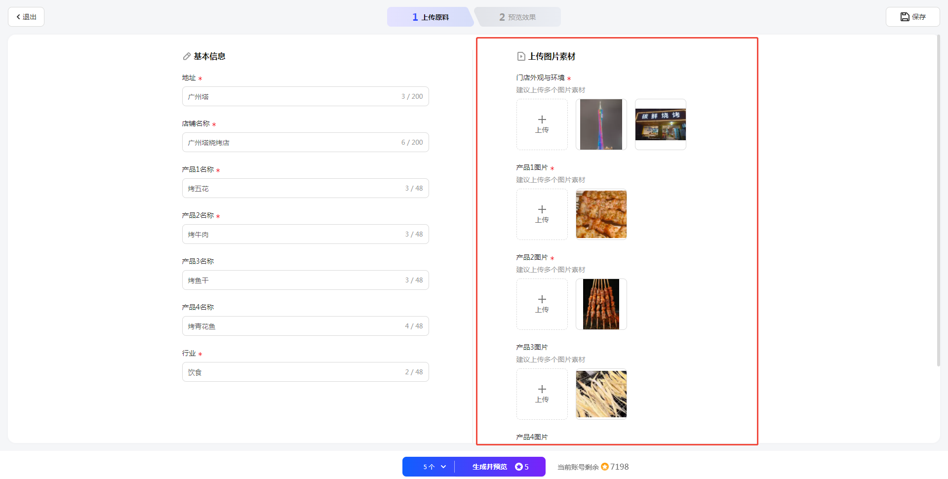 在编辑面板,填写基本信息,如主营业务、产品卖点和店铺名称等。AI会根据您填写的信息生成高质量的脚本文案。