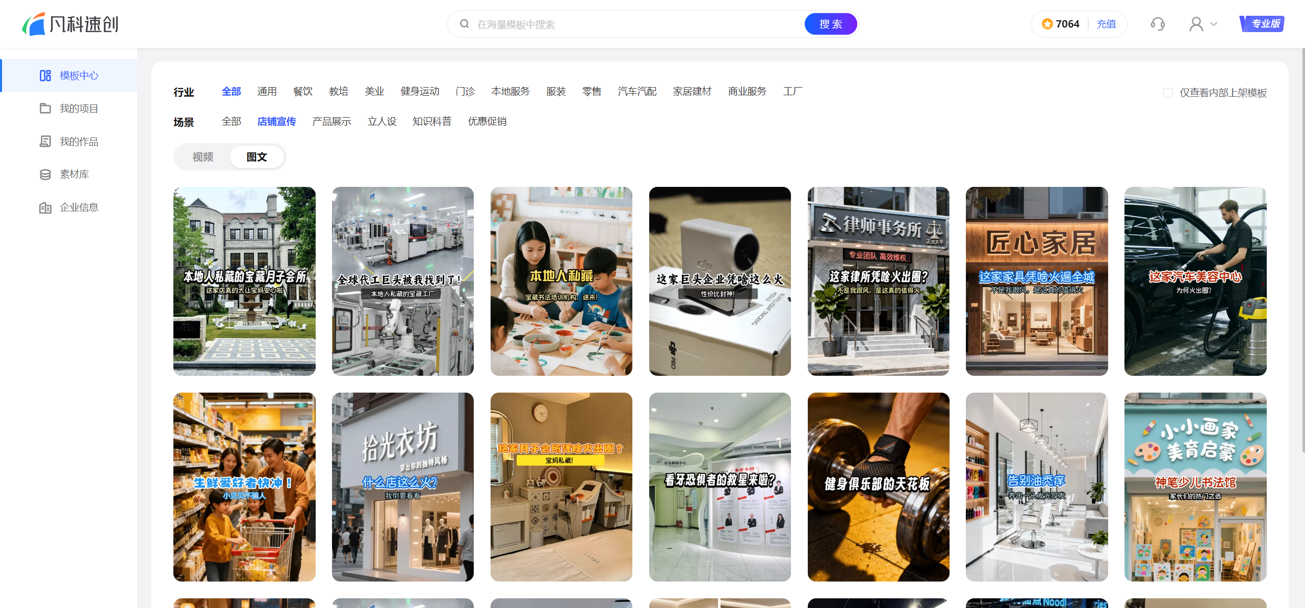 登录凡科账号后,进入模板中心,选择您的所属行业,确保模板内容与您的领域匹配。