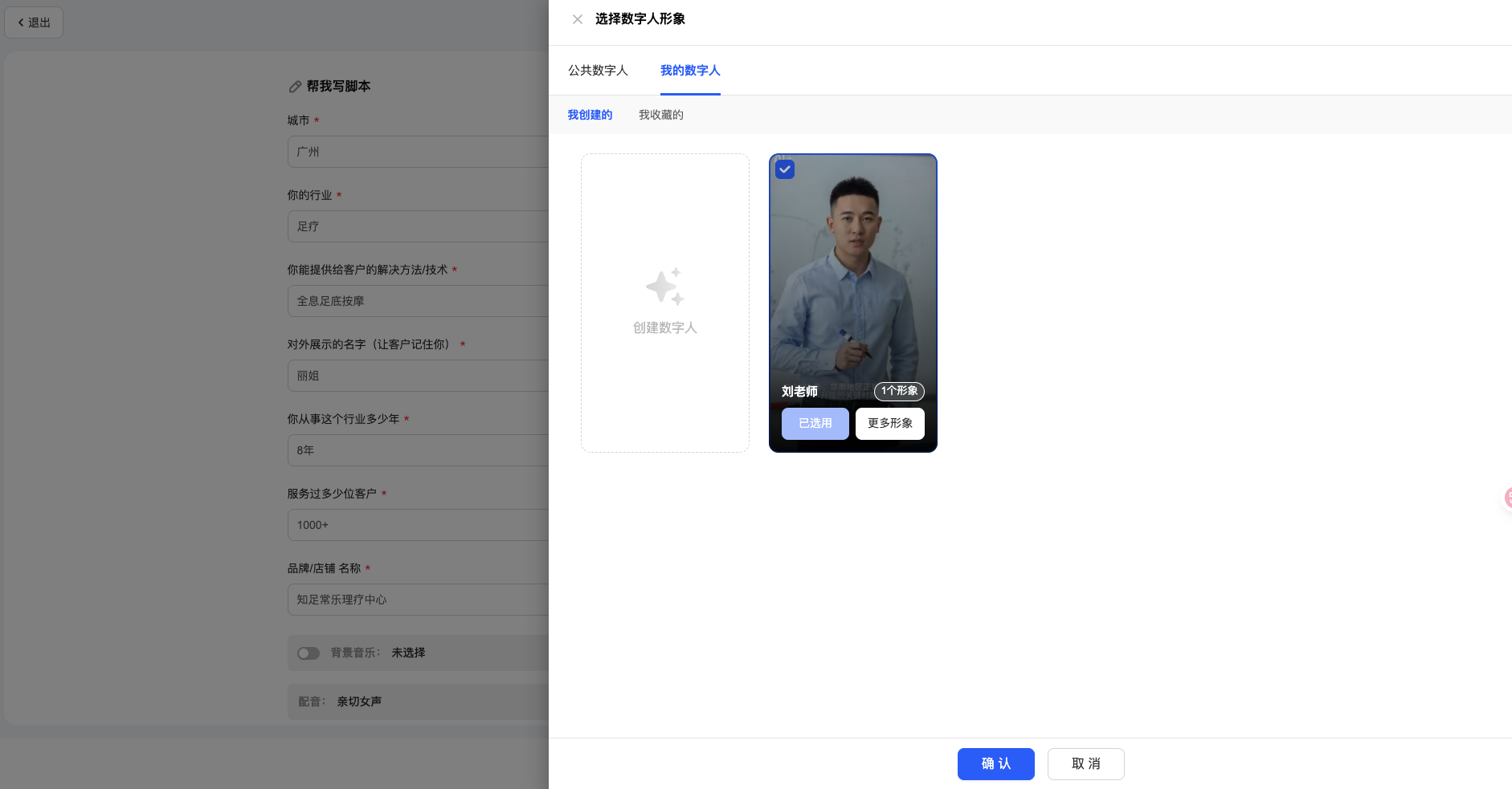 切换到“我的数字人”标签页,点击【创建】按钮。输入数字人名称,并上传符合要求的视频素材,等待系统生成专属数字人。