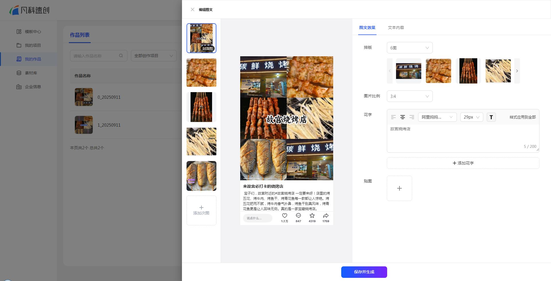 A:请检查项目是否真正完成了“生成并导出”的最后步骤。有时项目可能只是生成了预览,但没有执行最终的保存到作品库的操作。另外,您可以尝试点击作品列表右上角的【刷新】按钮,以确保您看到的是最新的列表。