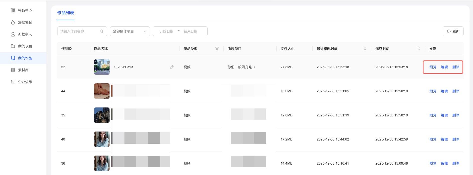 前往「我的作品」预览-下载视频作品