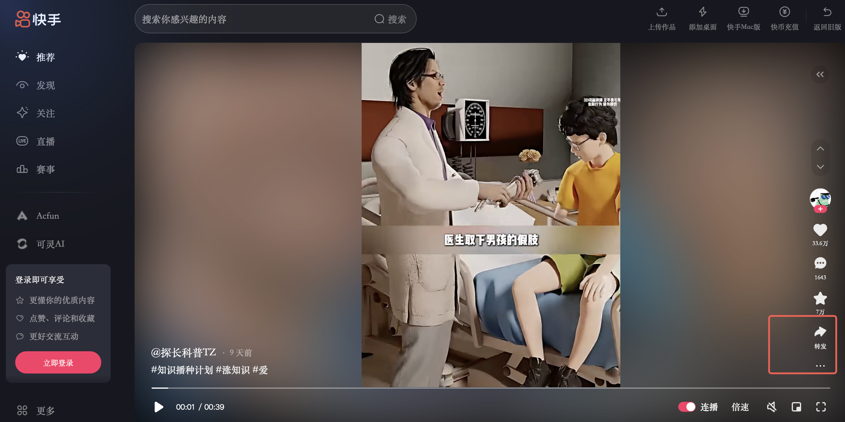 打开电脑浏览器,访问快手官网,登录个人账号;