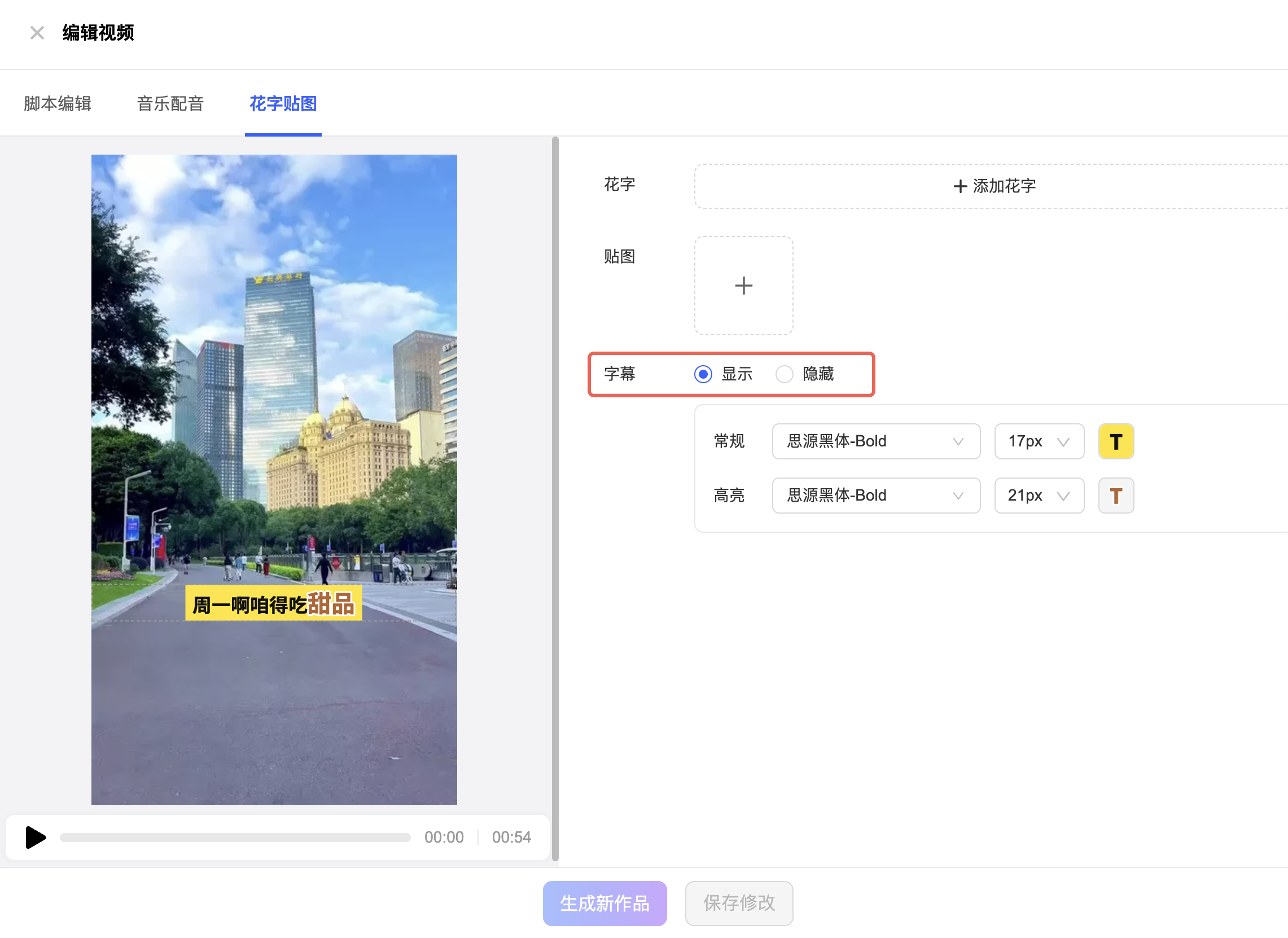 2. 视频编辑器支持隐藏字幕,降低敏感词带来的发布风险2. 视频编辑器支持隐藏字幕,降低敏感词带来的发布风险