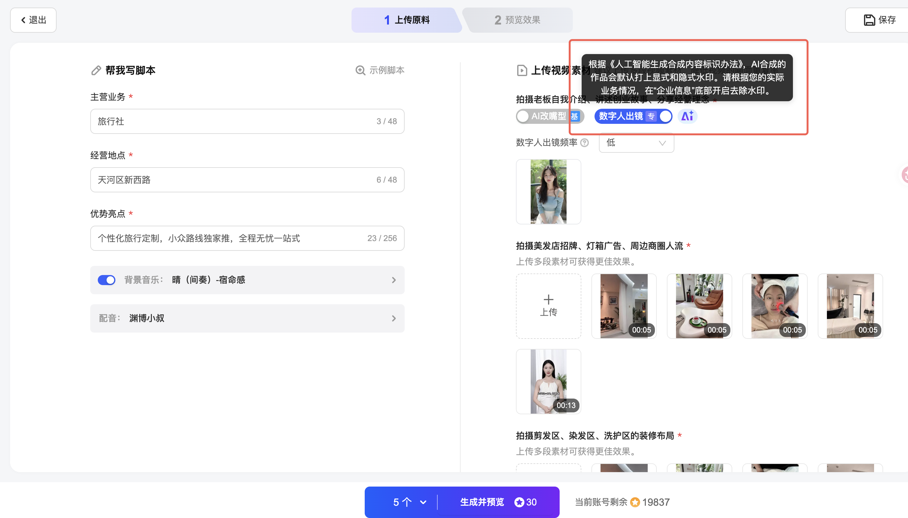 4. 数字人生成增加 AI 标识及免责声明,满足合规要求4. 数字人生成增加 AI 标识及免责声明,满足合规要求