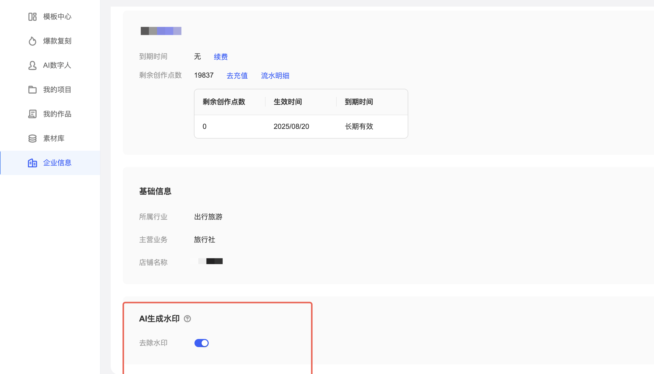 付费用户可在企业信息中,关闭显式标识: